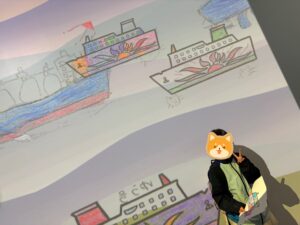 色を塗った船がスクリーンに登場したり、貨物船の仕組みを学べたり、さらにはコスプレコーナーまで🚢
