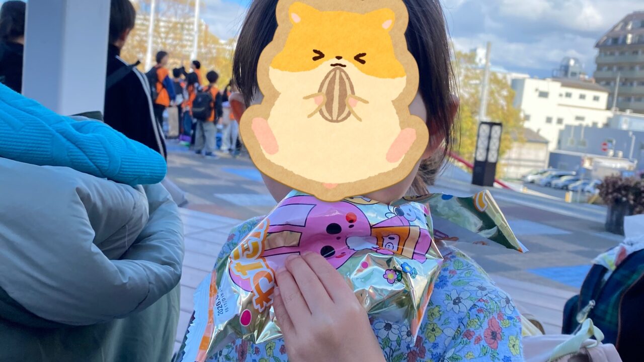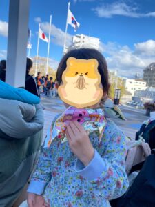 おやつを買って、海遊館の前で食べました❤