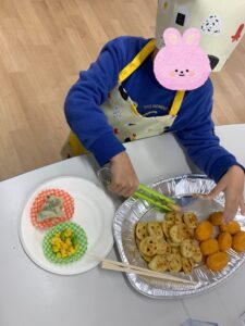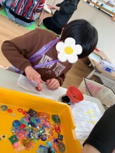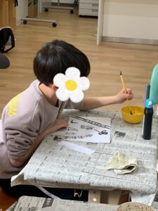 今回は、工作2ブース、ゲーム、墨絵、おやつの5つのブースを設置🌷