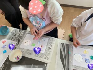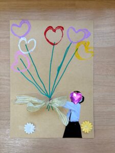 ホワイトデーが近かったので、ハートの花束を描きました💛子どもたちが花束を持っているような写真を添えて、とってもかわいい作品に仕上がりましたよ🌟